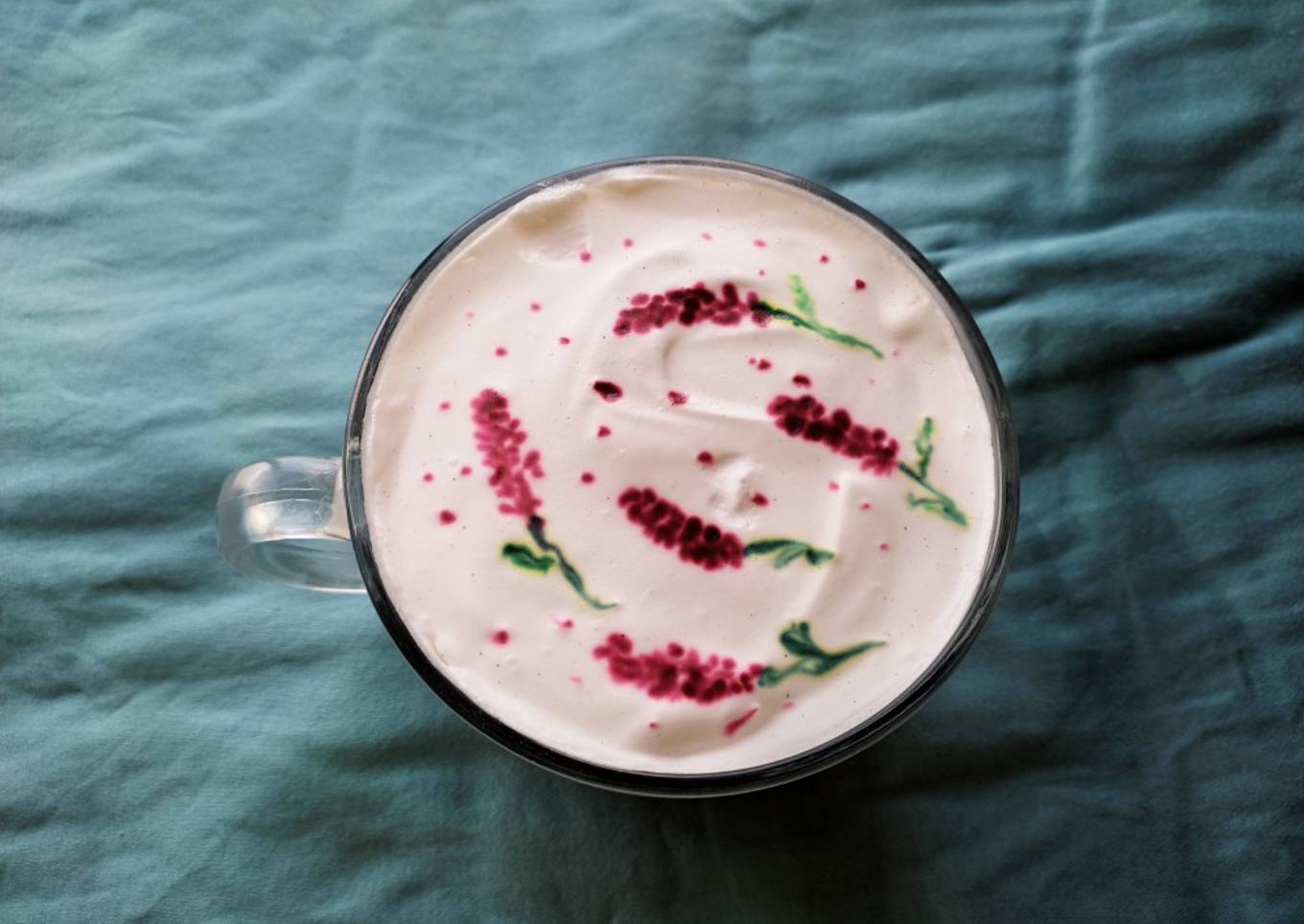 - Colar la leche con lavanda previamente refrigerada y agregar la mitad de la cantidad al vaso o taza, posteriormente agregar un poco de crema.