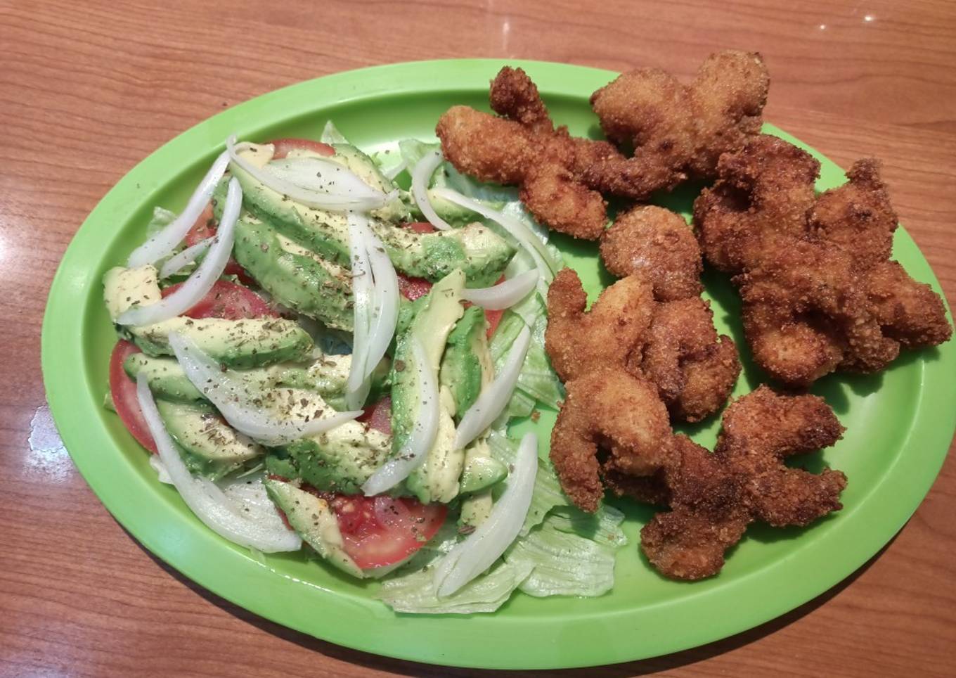 - Trocea con las manos las hojas de lechuga, haz una cama con ellas, pon una cama de jitomate, una de pepino, una de aguacate y una de cebolla. Corta el queso en cubos pequeños y agrégalos. Exprime el limón, espolvorea sal y orégano, finalmente rocía vinagre a tu gusto. No utilicé queso ni pepino porque en esta ocasión la utilizaré para acompañar tacos de camarón. (receta en mi perfil)