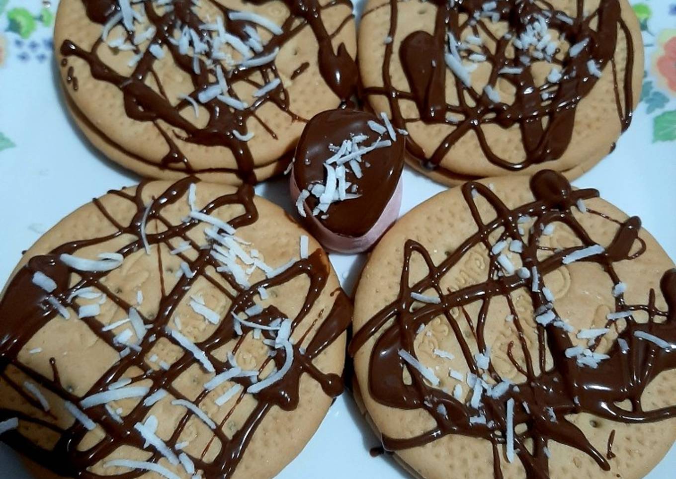 - Retira coloca otra galleta arriba aplasta suavemente agrega el chocolate opcional coco rallado y a disfrutar.. una combinación exquisita 👌