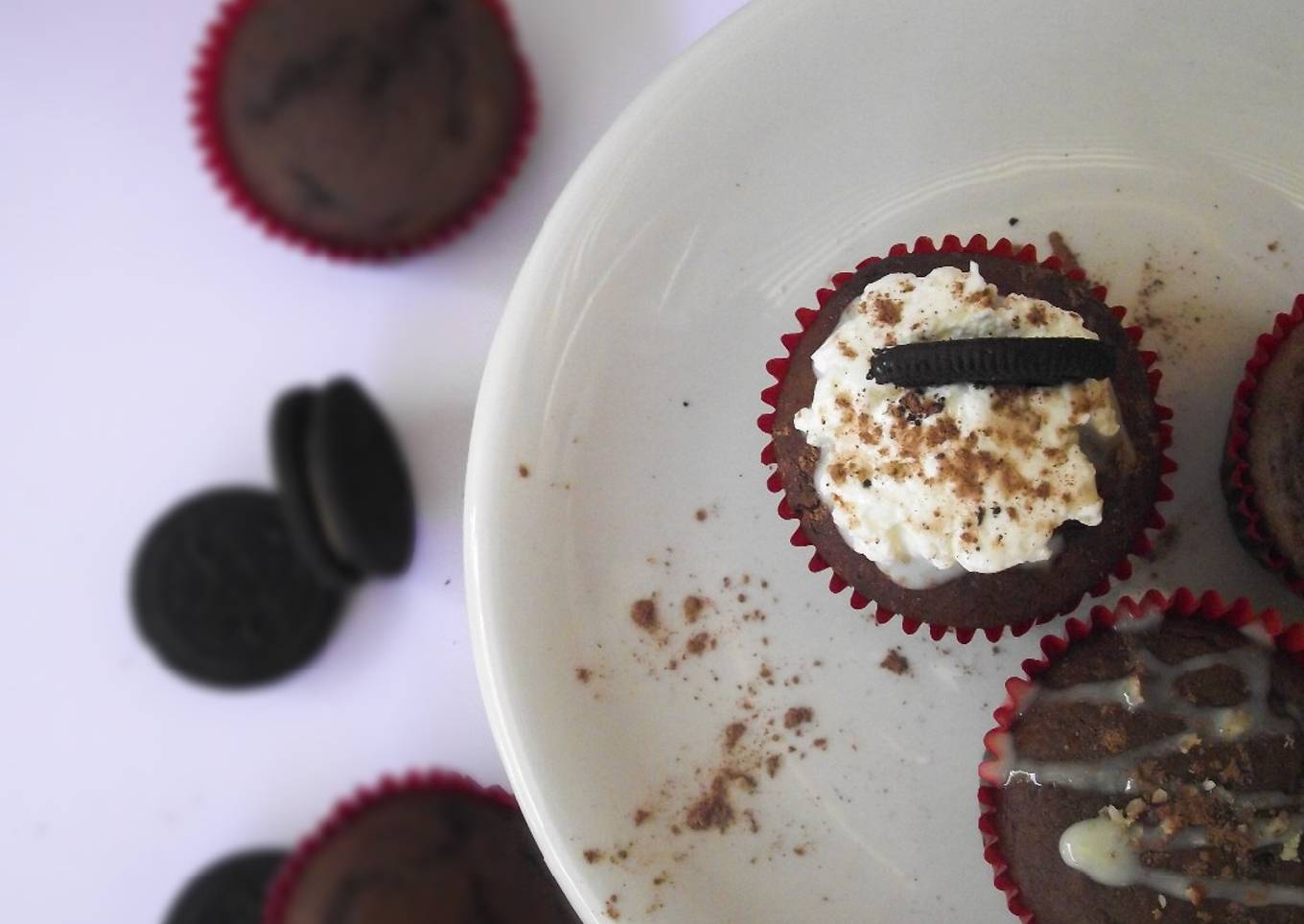 - Decorar el muffin con la crema batida y decorar con galleta oreo o cocoa.