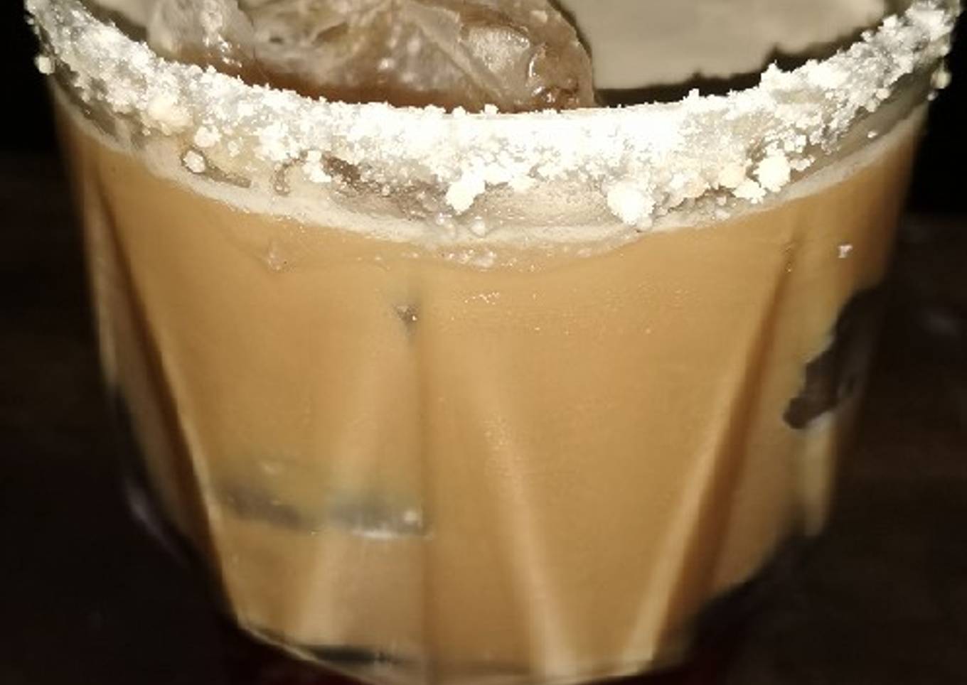 - Servir en un vaso corto escarchado de mazapán y dos hielos.