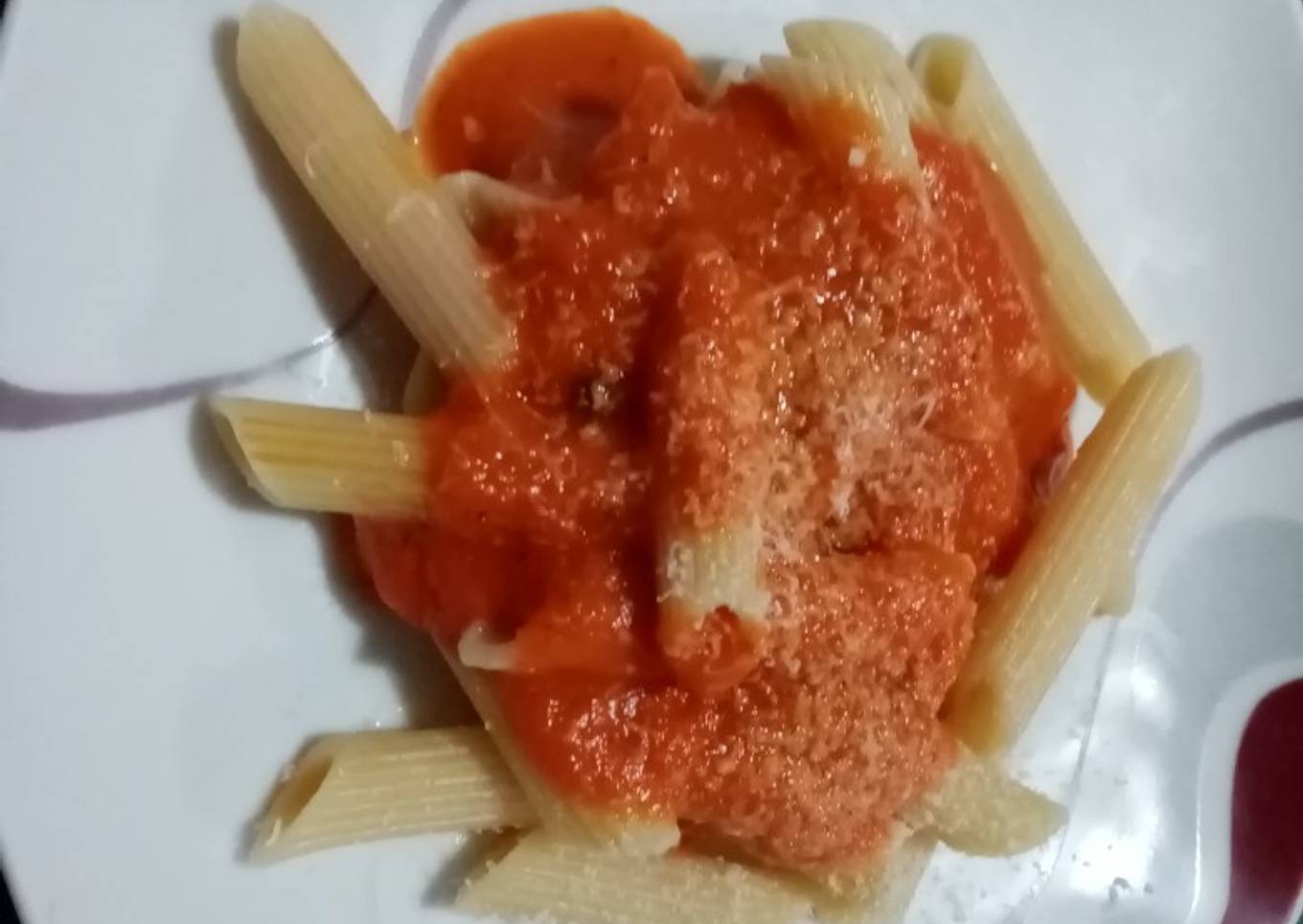- Servir la pasta, agregar un poco de salsa y ponerle queso parmesano