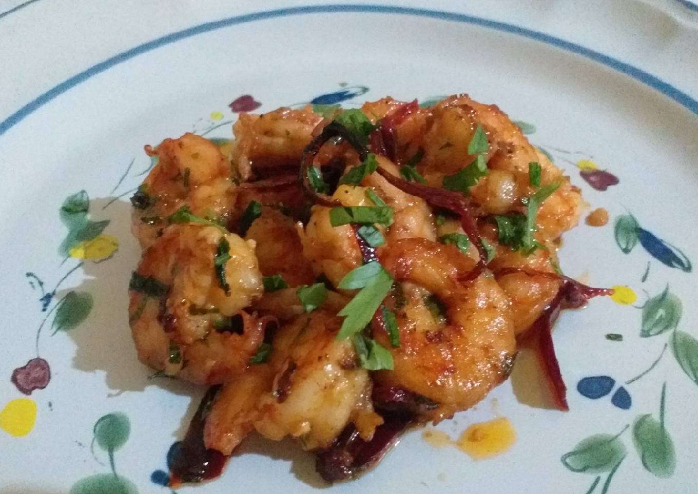 As for the number of servings that can be served to make Camarones al ajillo is 1 ración. So make sure this portion is enough to serve for yourself and your beloved family.